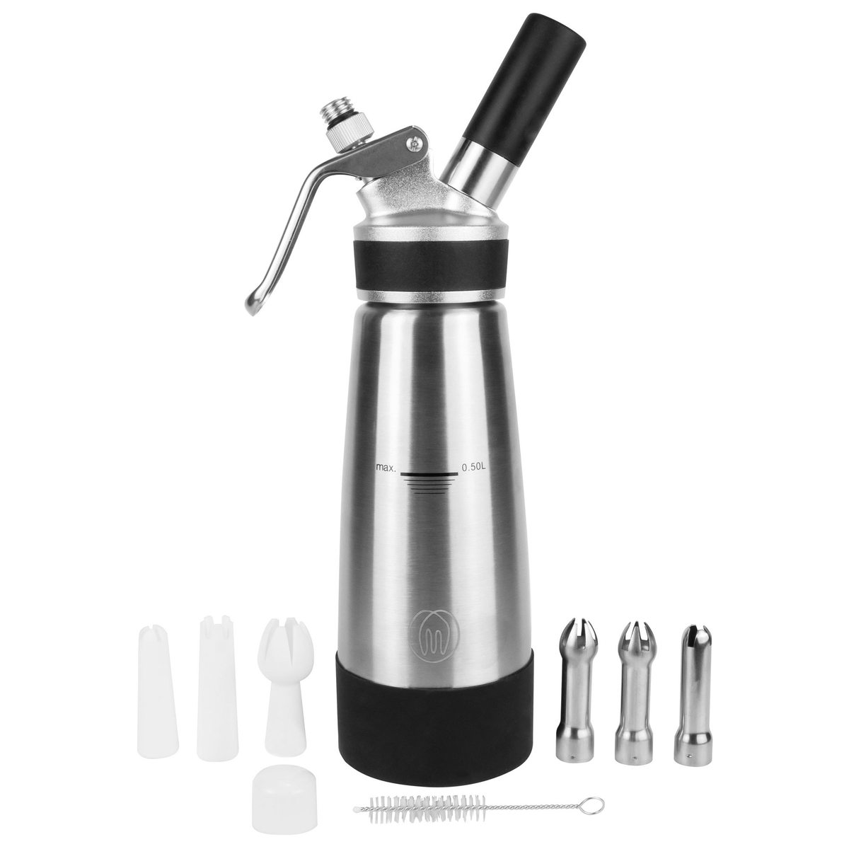 Med Marelds 0,5-liters sifon kan du utvide dine kulinariske prosjekter. Sifonen er praktisk til skummende kreasjoner som vanligvis forbindes med eksklusive restauranter - fra varme og luftige smørsauser som hollandaise til skummende hvitvinssauser og supper.