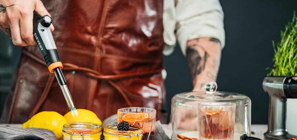 En matbrenner kan brukes til flere spennende retter, ikke bare desserter! Svi laks for en delikat og røkt smak, eller på tomater og paprika er noen eksempler. Den brukes også selvfølgelig til å karamellisere crème brûlée, crema catalana og andre desserter.
