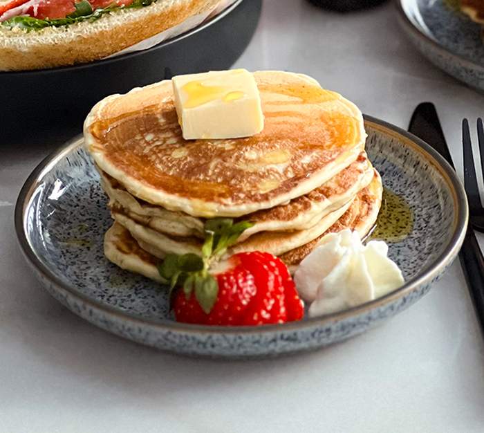 Et must på brunchen er selvfølgelig fluffy gode amerikanske pannekaker! De serveres på klassisk vis.