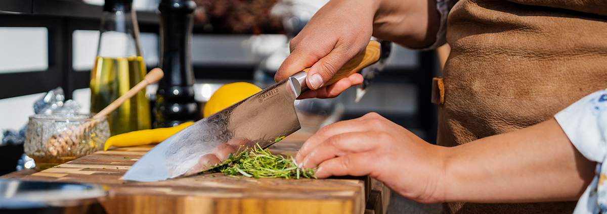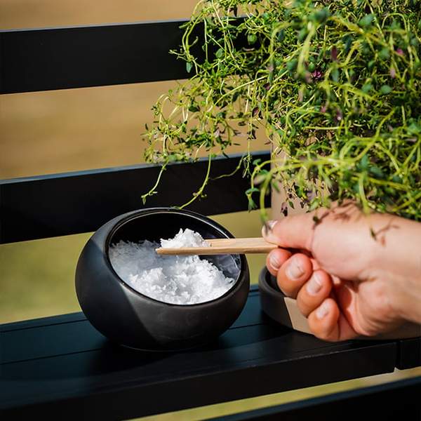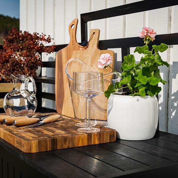 Dekorer deretter utekjøkkenet med smått, som friske urter, blomster, lamper og skjærebrett.