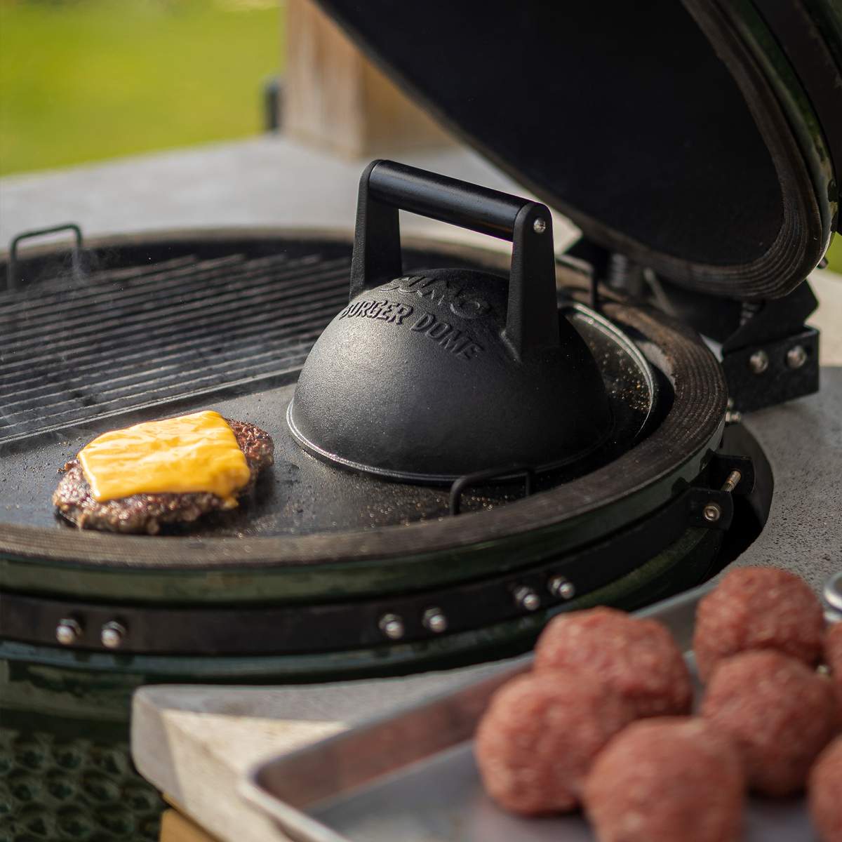 Alla har ju en åsikt om det. Men på senare år har det blivit väldigt populärt att göra smashburgare. Här pressas nötköttet ner mot en uppvärmd grillplatta. Det gör att kontakten med köttet blir större, så att du även får en väldigt kraftig stekyta på biffen. Här kan du med fördel använda en gjutjärnspress. Den funkar också bra när du t.ex. bryner en biff eller skinnsteker fisk, då det säkerställer att råvaran har perfekt kontakt med pannan. Att grilla din burgare på stekplatta har också fördelen att du behåller fettet på plattan, så kan du använda den till att steka annat i. Du slipper också att lågorna blossar upp, som ibland kan hända med droppande fett.