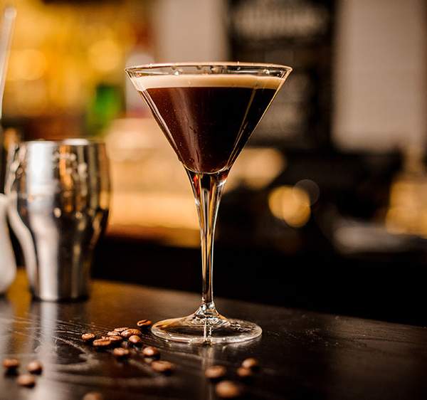 Rist alle ingrediensene unntatt kaffebønnene i en shaker ordentlig. Sil over i glasset og pynt med kaffebønnene.