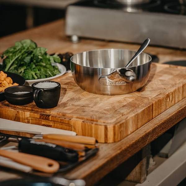 Skjærebrettet fraCulimathar en robust, klassisk design i eik med praktisk renn.