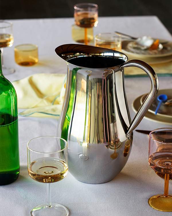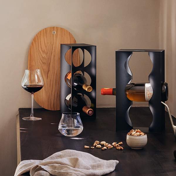 Vinstället Alfredo fraGeorg Jensenhar en stilren design i rustfritt stål og finnes i tre fargevalg