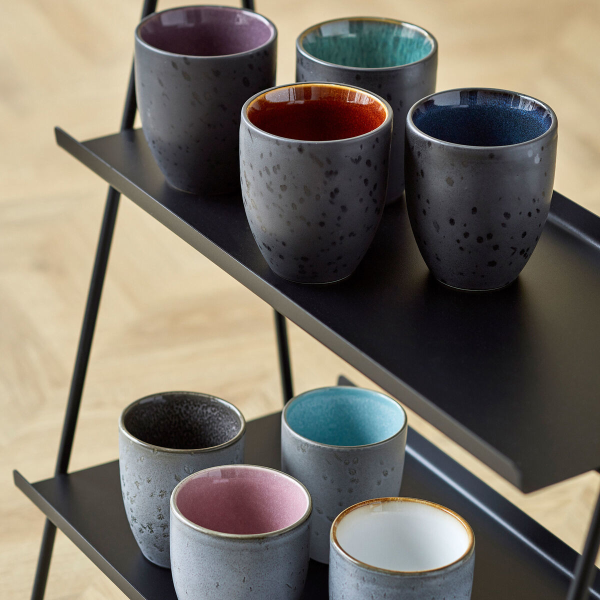 Krusene er laget i robust steintøy med en unik reaktiv glasur, hvor innsiden er blank, og krusets ytre er matt i henholdsvis svart og grå. Hvert enkelt krus er unikt, så du finner ikke to, som er helt like. Dessuten tåler steintøyet oppvaskmaskin, mikrobølgeovn, fryser ned til -18° C og ovn opp til 220° C.