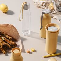 Smart drikkeflaske i stilren design fra Eva Solo. Flasken er laget av BPA-fri plast og har en skrukork som er helt tettsittende. Perfekt å ha med seg på farten, for eksempel under en reel treningsøkt i treningsstudioet, gjennom arbeidsdagen eller på en koselig skogsutflukt. Flasken rommer 0,5 liter og kan vaskes i oppvaskmaskin. Imidlertid må skrukorken vaskes for hånd.