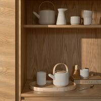 Kruset kommer med en drikkebrikke av bambus som ikke bare beskytter bordet mot flekker, men også gir serveringen et vakkert og organisk preg. I dette nøye utformede settet møtes skandinavisk design og asiatisk innflytelse, noe som skaper en beroligende atmosfære og gjør hver drikkepause til en avslappende stund.