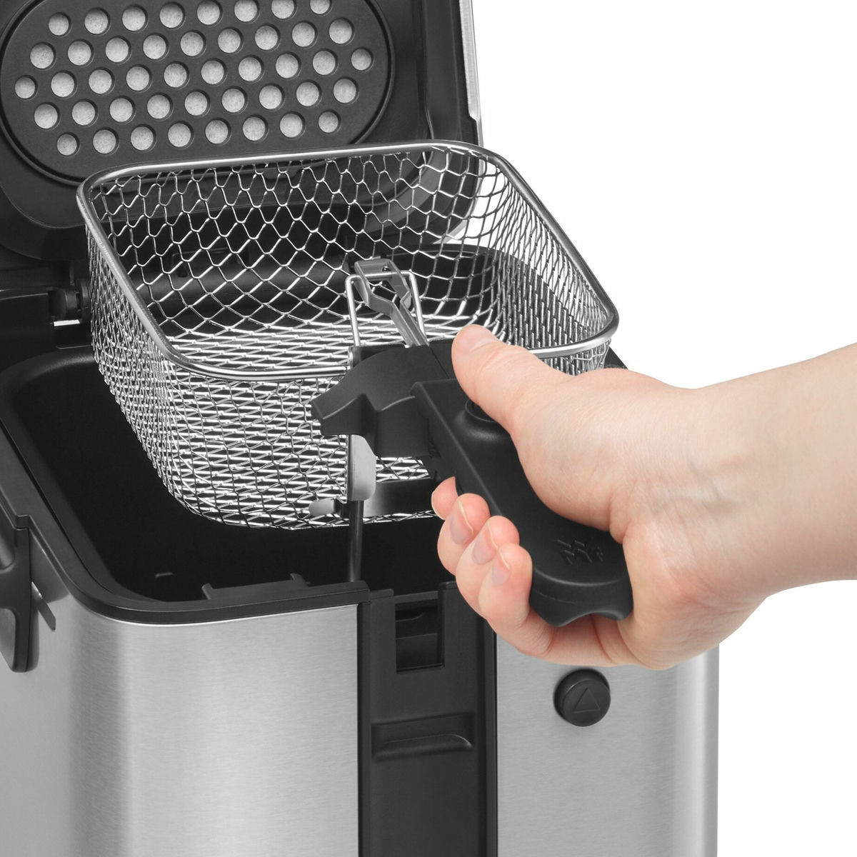 Frityregryte for kvalitetmerket WMF. Denne frityrgryten kan lage de perfekte pommes frites, og du får en god kombinasjon av en potetskjærer og en mini-frityrgryte. WMF gryten har en sikker løftemekanisme, en enkel lokkåpning, integreret filter og en smart justerbar temperatur kontroll. Du er dermed garantert lekre hjemmelagede pommes frites.