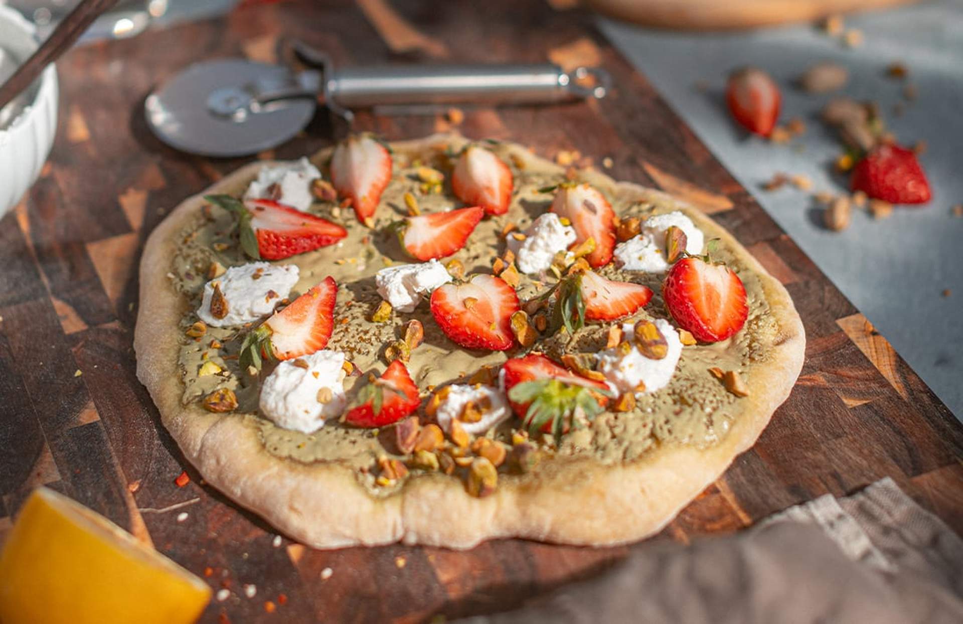 Et genialt grilltilbehør! Denne halvmåneformede, vendbare grillplaten kan kombineres med andre tilbehør, for eksempel pizzasteinen i samme form, eller en ekstra grillplate.