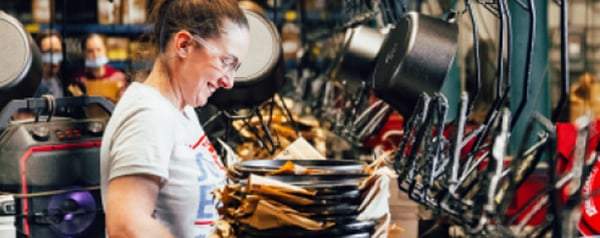 De blander støpejern, resirkulert stål, legeringer og støpegods fra vårt støperi for å skape det smeltede jernet som deres kulturarvskokekar er laget av. Ved å bruke resirkulert stål og kassert støpegods holder de materialer unna deponiene. I 2021 kjøpte Lodge inn 9 076 tonn resirkulert stål, eller sliterstål, og smeltet om 33 370 tonn defekt støpegods, noe som gjør at materialet kan være i bruk i generasjoner.