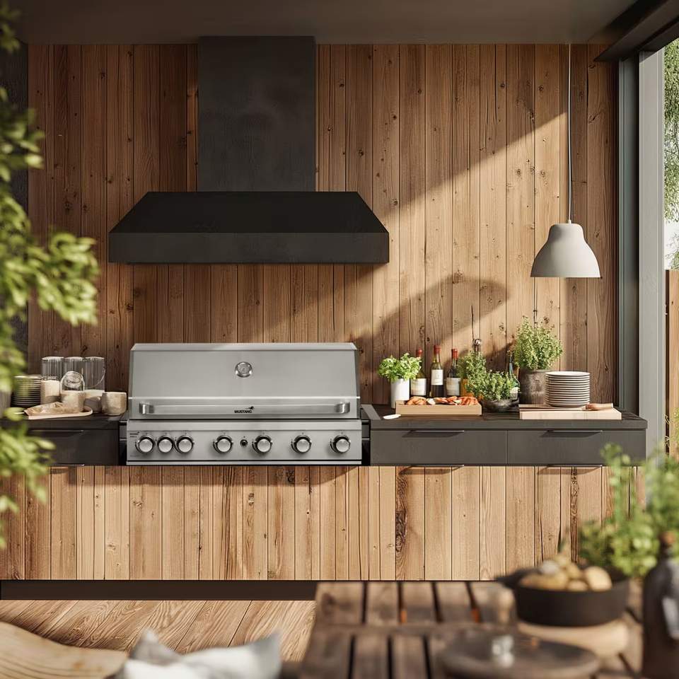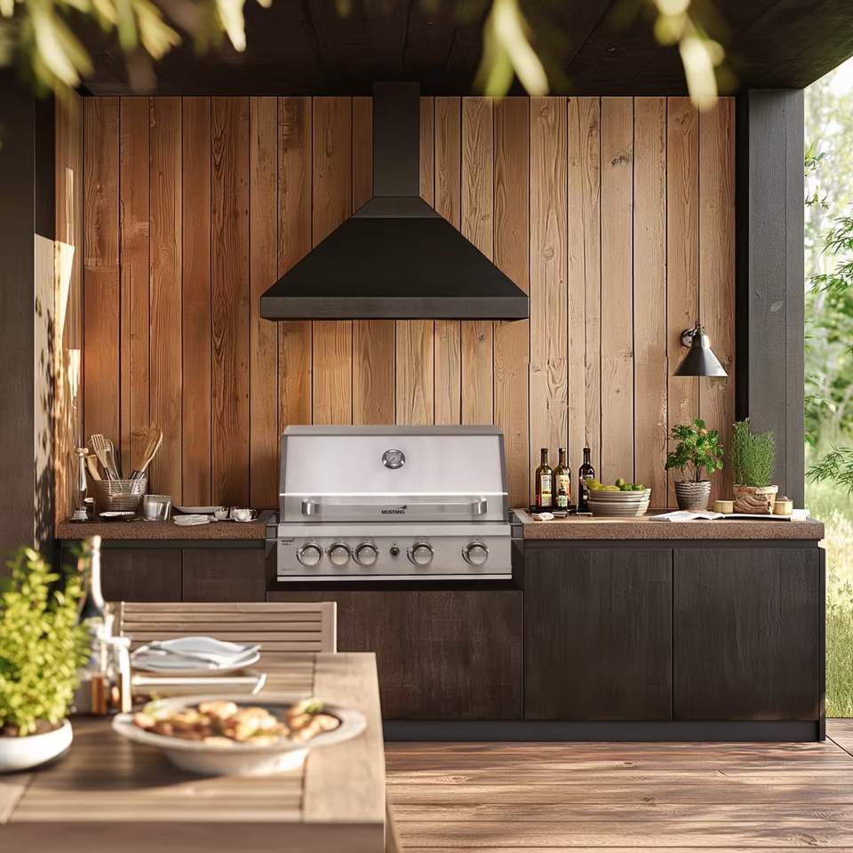 Mustangs mer påkostede utekjøkken representerer en premiumkategori der grilling, matlaging og oppbevaring smelter sammen i en komplett helhetsløsning.