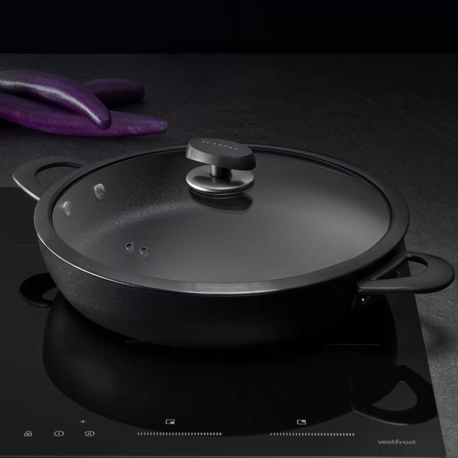 Scanpans nyeste serie, Pro SB+, kombinerer det ikoniske, dype sorte med rå styrke og stilren minimalisme. Serien er designet for både estetikk og funksjon – et ekte statement i det moderne kjøkkenet.