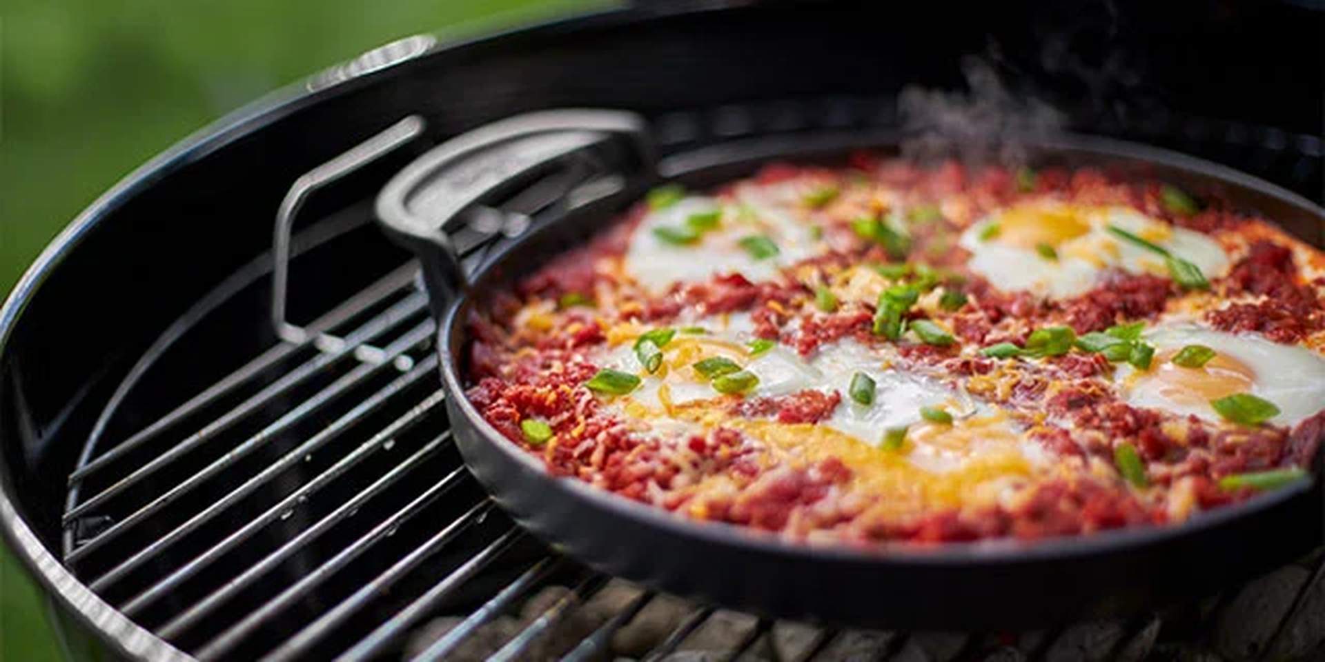 Finnes det noe bedre enn å våkne om morgenen og nyte den friske luften og roen i hagen? Hopp ut av sengen, tenn grillen og lag en herlig frokost på Gourmet BBQ System støpejernfat. Støpejernfatet blir raskt og jevnt varmt, slik at du får luftige pannekaker, smaksrike arme riddere og sprøstekt bacon.